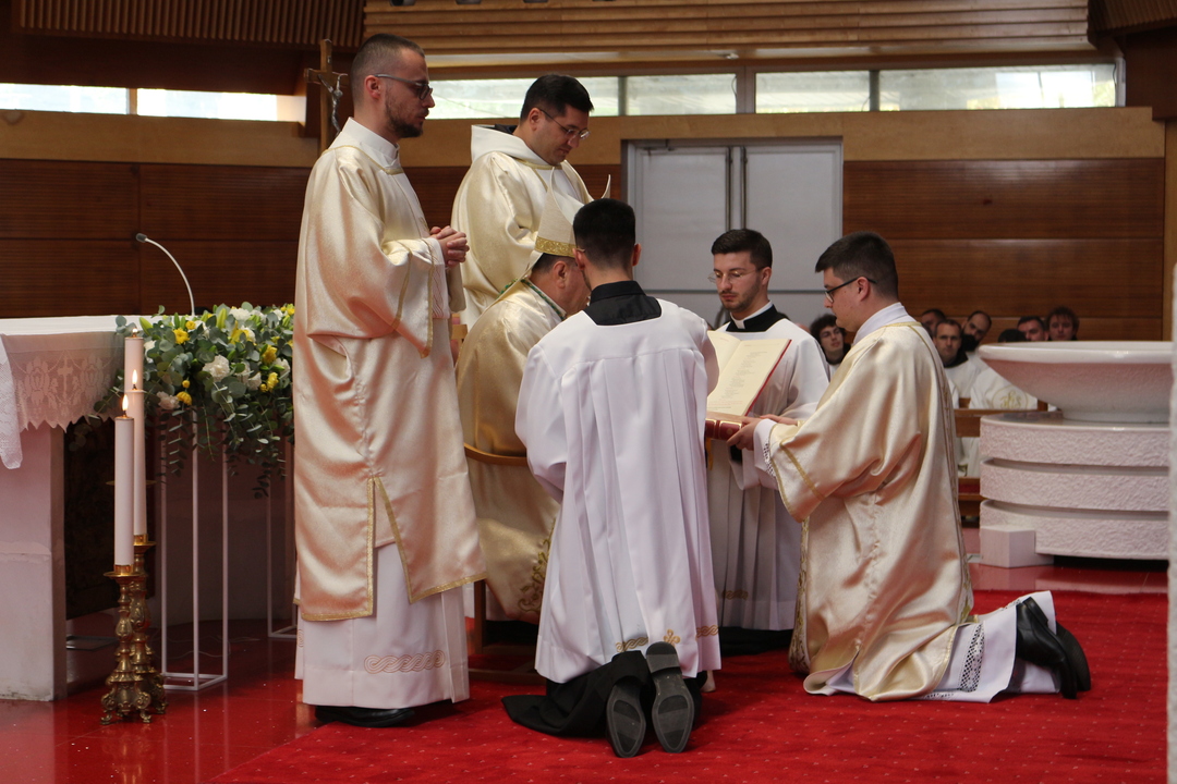 Dana 15.11.2025. bogoslovska zajednica Vrhbosanskog bogoslovnog sjemeništa sa odgojiteljima rektorom preč. Ivanom Rakom i vicerektorom Ljubom Zadrićem prisustvovala je đakonskom ređenju u Mostarskoj katedrali Marije Majke Crkve. Tijekom svečanoga misnoga slavlja u 11 sati, biskup mostarsko-duvanjski i apostolski upravitelj trebinjsko-mrkanski mons. Petar Palić zaredio je trojicu novih đakona: dvojicu kandidata, fra Davida Sliškovića i fra Antu Radoša, za Hercegovačku franjevačku provinciju i don Tomislava Čarapinu za Mostarsko-duvanjsku biskupiju, koji je bogoslovsku formaciju proveo u VBS-u. U koncelebraciji su bili: apostolski vizitator s posebnom ulogom za župu Međugorje nadbiskup Aldo Cavalli, provincijal Hercegovačke franjevačke provincije fra Jozo Grbeš, generalni vikar hercegovačkih Biskupija don Nikola Menalo, zatim vikari, dekani, župnici, odgojitelji, četrdesetak svećenika i dvojica đakona.